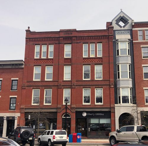 The Sheraton Building at 114-120 North Main Street which is occupied by Liberty Utilities on the ground floor.